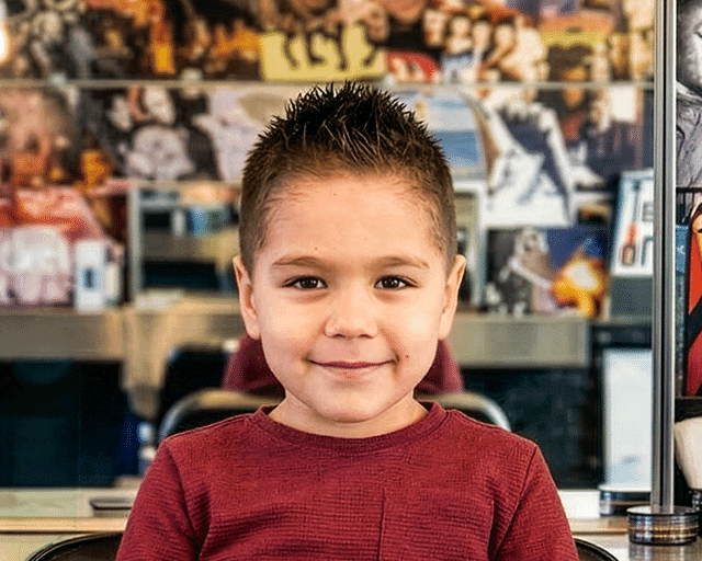 A haircut service for the Little Rockstars. Age ranges vary by location—please call your local shop for details. (Note: Haircuts requiring advanced techniques like heavy layering, skin fades, or detailed styling may be charged at regular or specialty pricing.)
